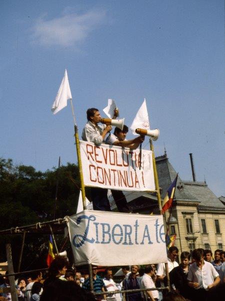 Au printemps 1990, les étudiants bucarestois commencent à se réunir sur la Place de l’Université, au pied de l’hôtel Intercontinental où dès les premiers jours de la Révolution la plupart des journalistes et les télévisions du monde entier ont installé leurs pénates. L’endroit est doublement stratégique : l’université est un des rares lieux à avoir échappé au fil des ans à l’endoctrinement communiste. Quant à l’hôtel Intercontinental, il constitue pour les médias étrangers l’observatoire le plus pratique du bouillonnement roumain. Il suffit de se pencher à la fenêtre de sa chambre pour savoir – à l’importance des manifestants et au nombre des policiers – si la journée sera calme ou animée.