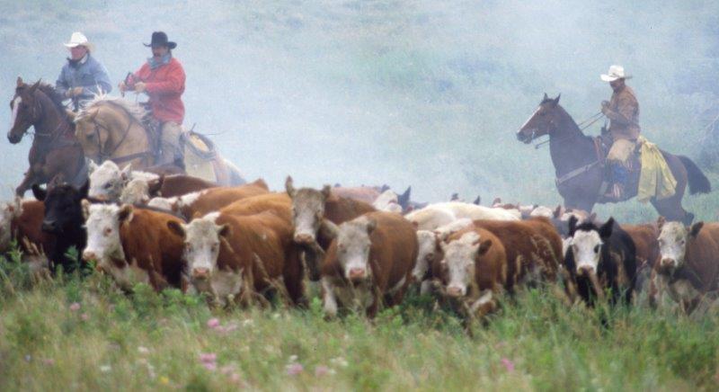 Très rapidement, de nouveaux empires se créèrent au nord du Wyoming, dans le Montana et, au-delà de la frontière canadienne, dans les provinces de l’Alberta et de la Colombie Britannique. Souvent, les travaux de construction des voies ferrées « coast to coast » donna un élan supplémentaire à ces nouvelles entreprises. Il fallait en effet nourrir les ouvriers, puis les passagers de ces lignes ferroviaires transcontinentales. C’est ainsi, par exemple, que se développèrent en Colombie- Britannique deux ranches voisins, le Douglas Lake Cattle Ranch (le plus grand du Canada, 200.000 hectares, 15.000 têtes de bétail) et le Quilchena Cattle Ranch (créé par des émigrants savoyards), deux ranches où nous avons eu le privilège, un siècle plus tard, de travailler et de partager la vie des cow-boys.